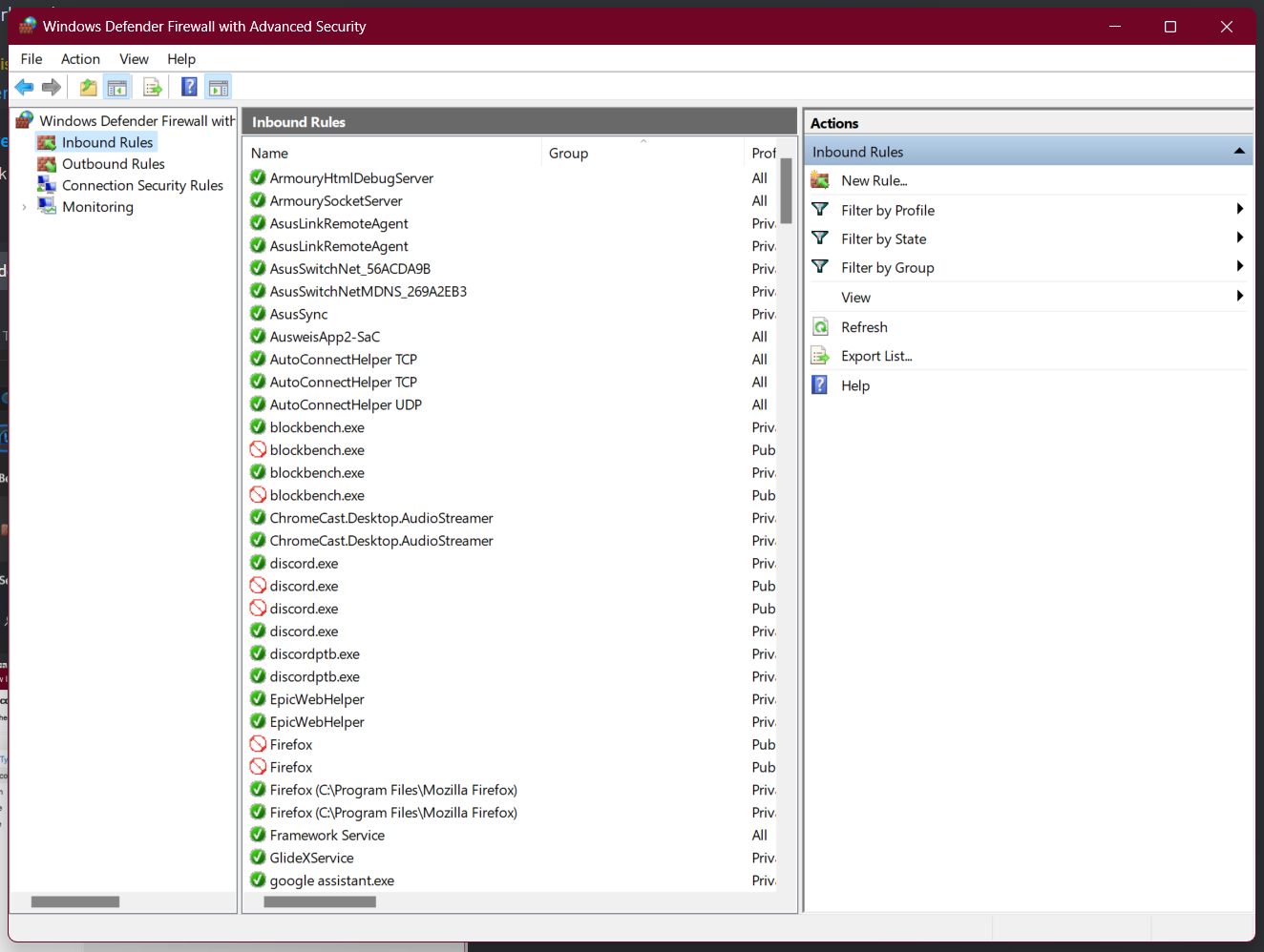 • Windows Defender Firewall with Advanced Security (GUI)